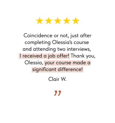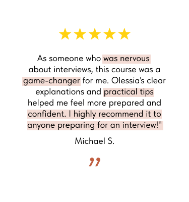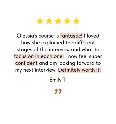 This course was a game-changer for me! I've always been very nervous before interviews and ended up rambling. After completing this course, I felt much more confident and prepared. I went through 6 interviews and got a job offer at IKEA, the company I've wanted to work for since my uni days. I'm very happy and highly recommend it to anyone!